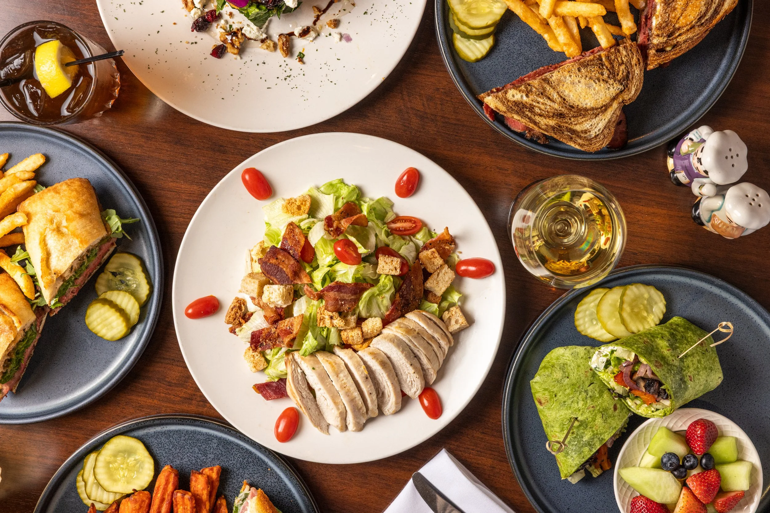 add protein to any salad: 6oz chicken breast (+12), 4oz sliced sirloin (+12), 4oz salmon filet (+12), broiled or breaded shrimp (+6.50)